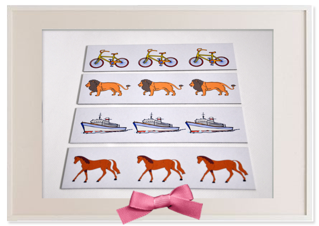 ประกอบด้วย รูปภาพเรียงเป็นแถว แสดงลำดับ จำนวน 4 ชุด เช่น รูปม้า 3 ตัว